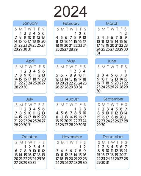 2024 Printable Calendar FullYear Calendar (Grid style)